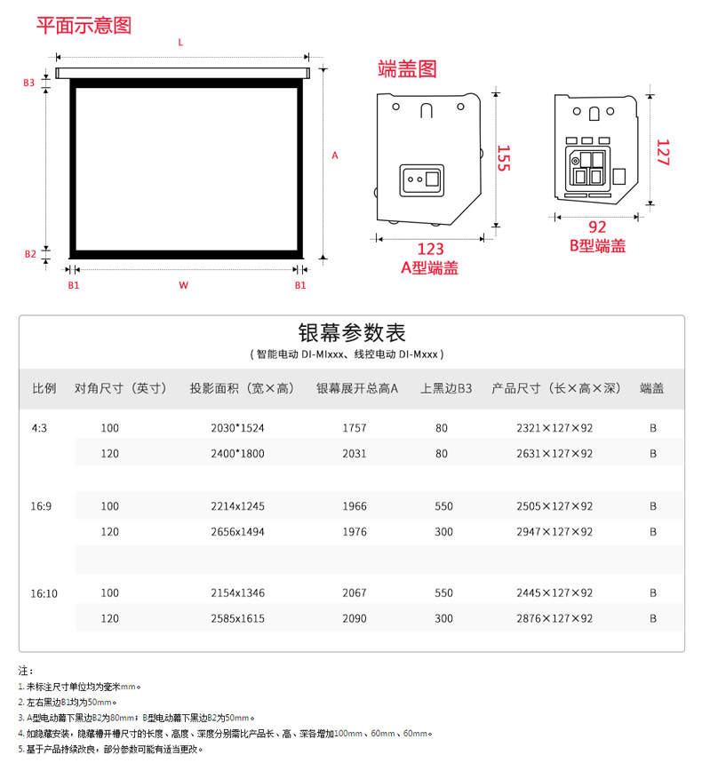 商品名称:美视 智能电动白塑幕(16:10) 120英寸