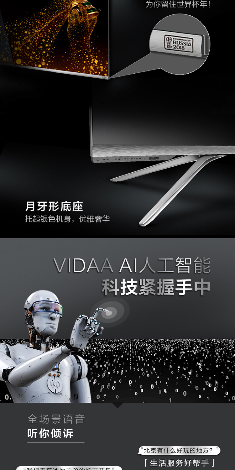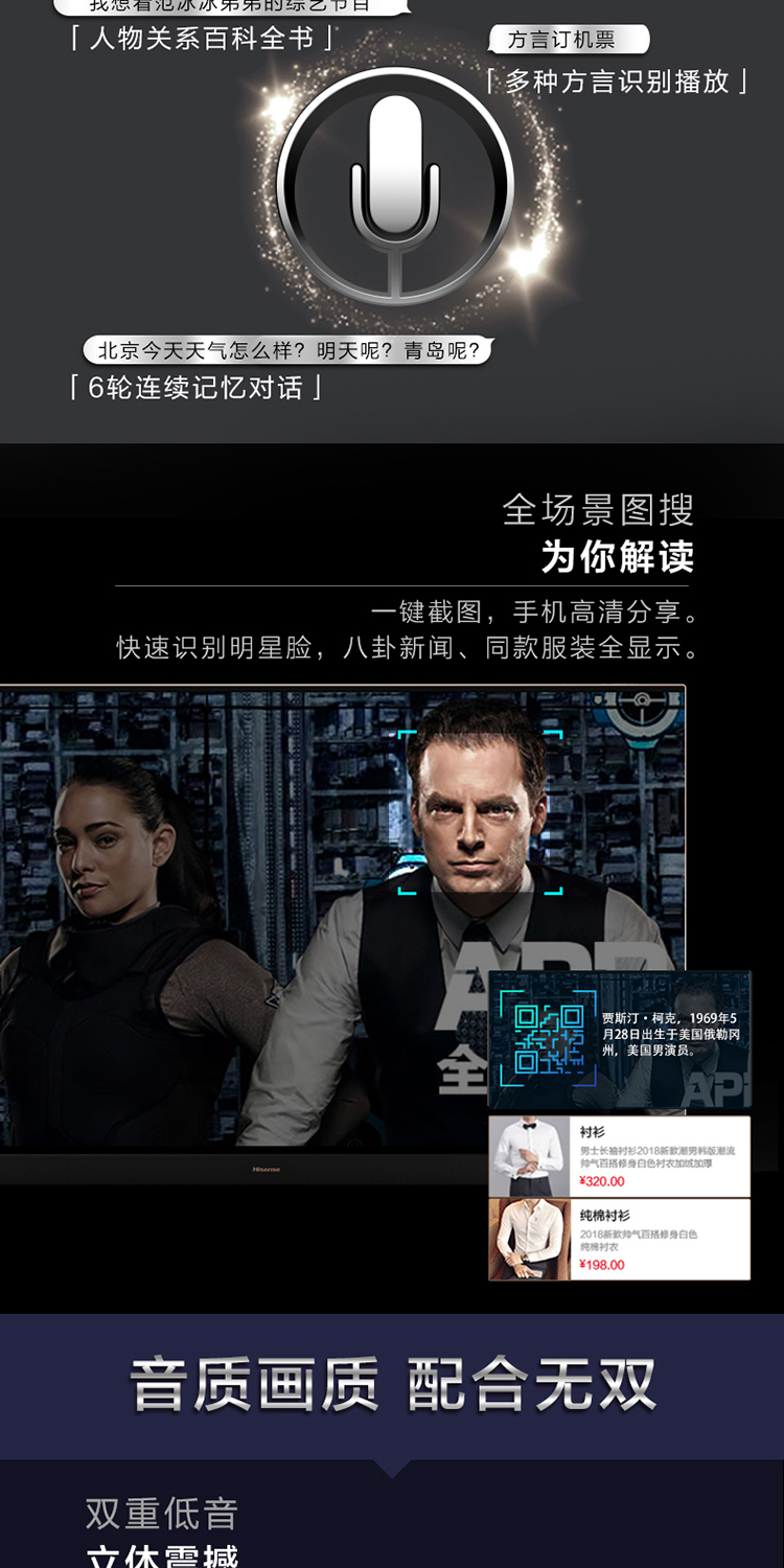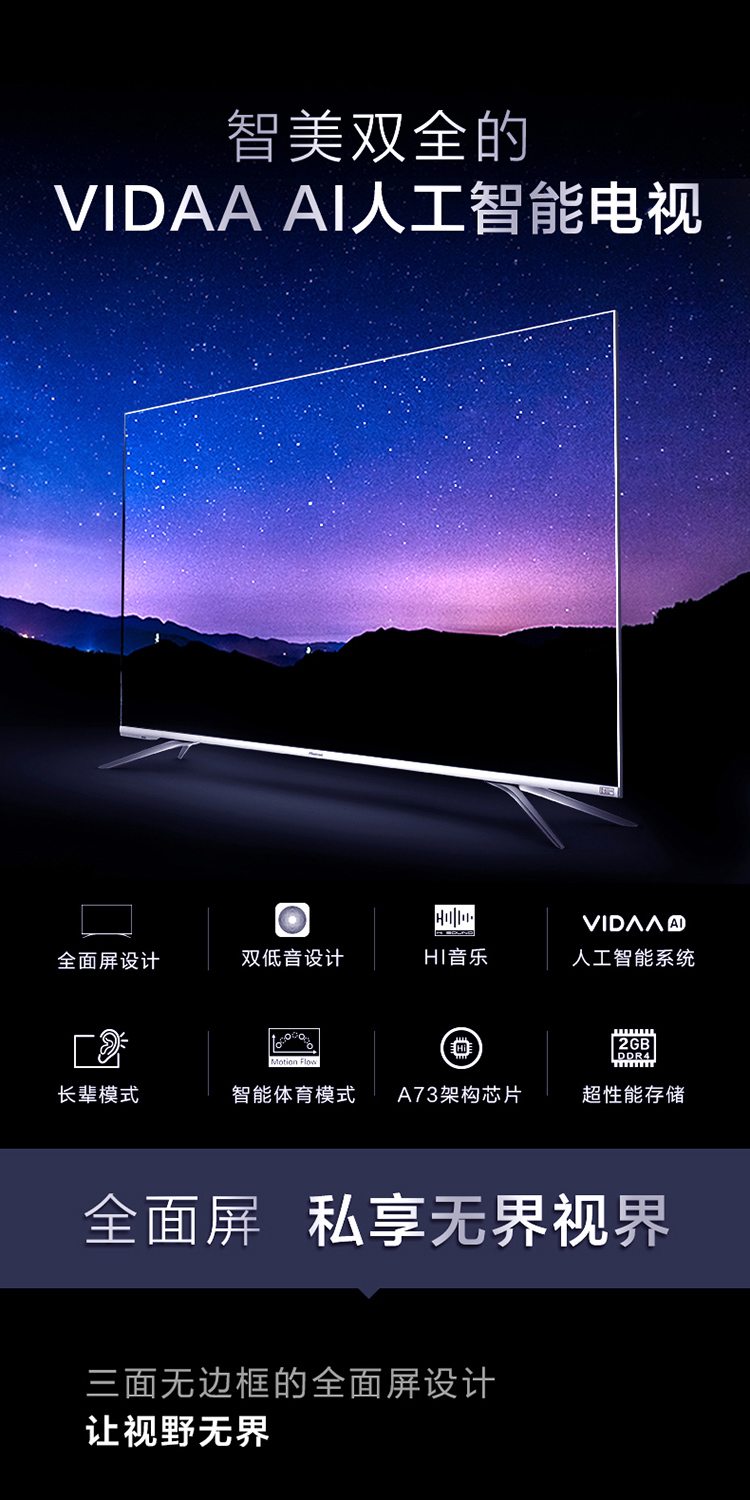 商品名称:海信(Hisense)HZ65A70 65英寸 超高清4K HDR 人工智能电视 丰富资源