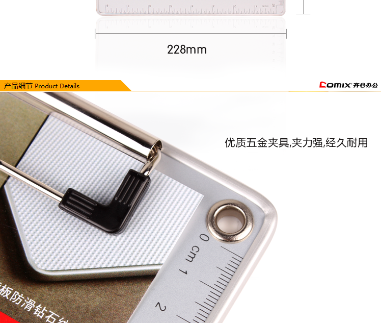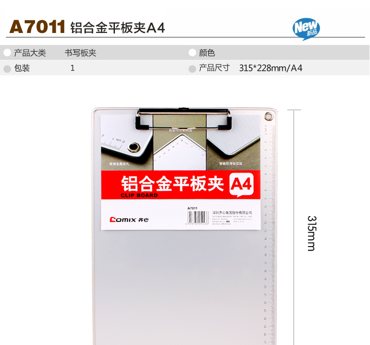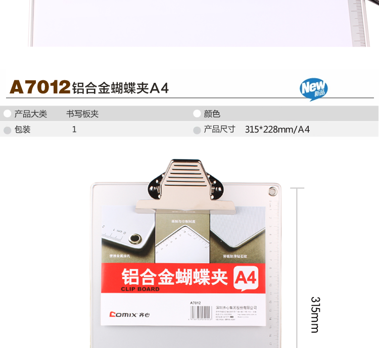 商品名称:齐心 A7011铝合金板夹 平板夹A7012 A4蝴蝶夹