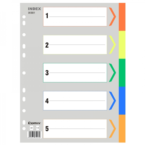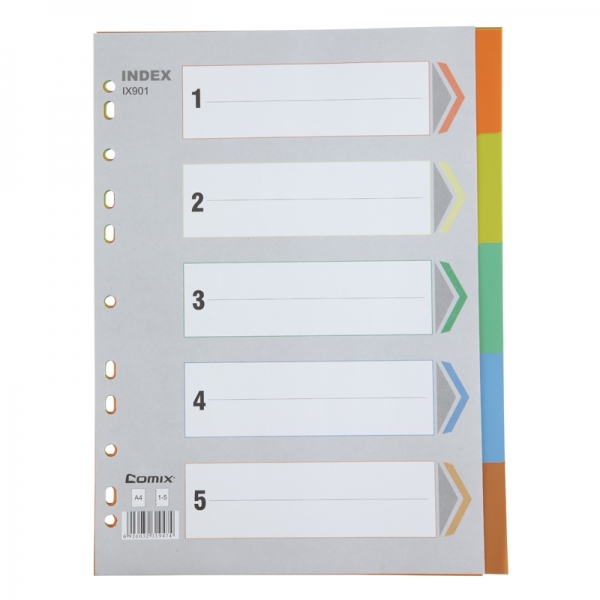 商品名称:齐心IX901分类纸五色11孔PP