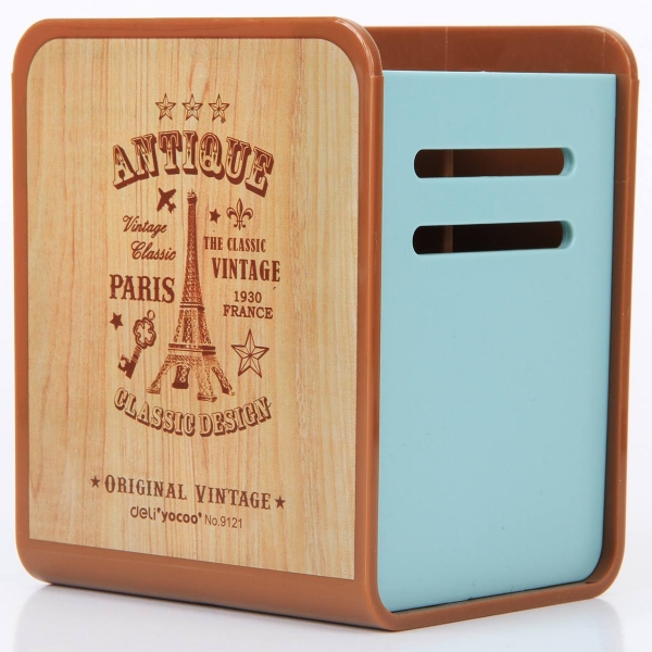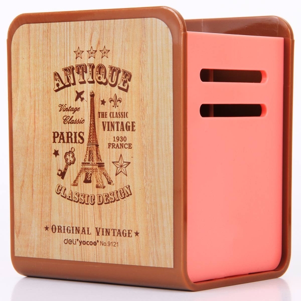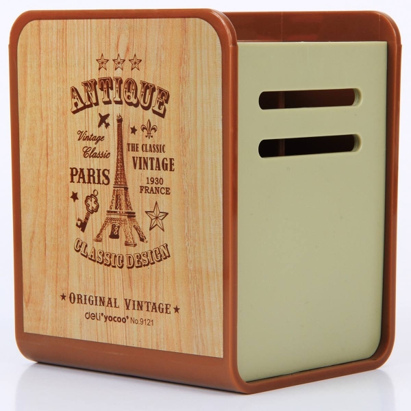 得力9121 木.世界 创意时尚笔筒 (颜色随机)
