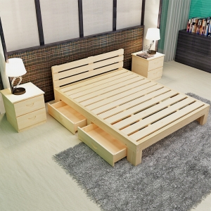 欧宝美 单双人木床 公寓床 实木床 1.2米宽带侧抽屉