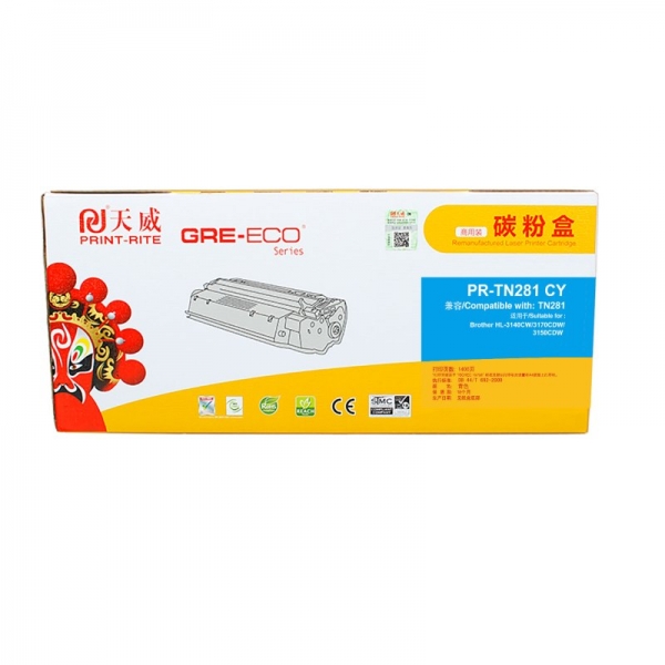 商品名称:天威(PrintRite) PR-TN281E CY 1400页 商用装硒鼓 青色