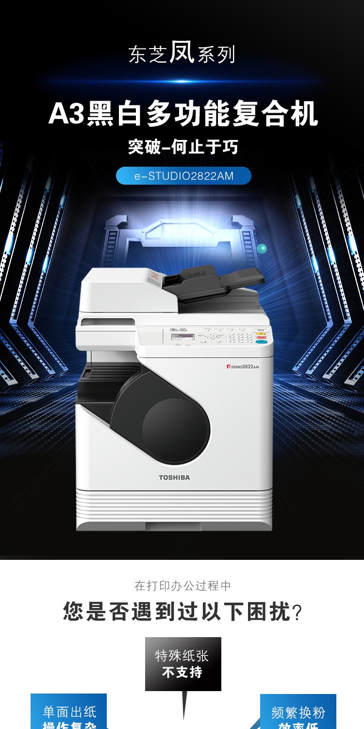 东芝(TOSHIBA)DP-2822AM 数码复合机 A3黑白激光双面打印复印扫描 e-STUDIO2822AM+自动输稿器+单纸盒