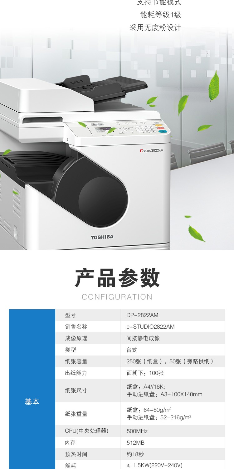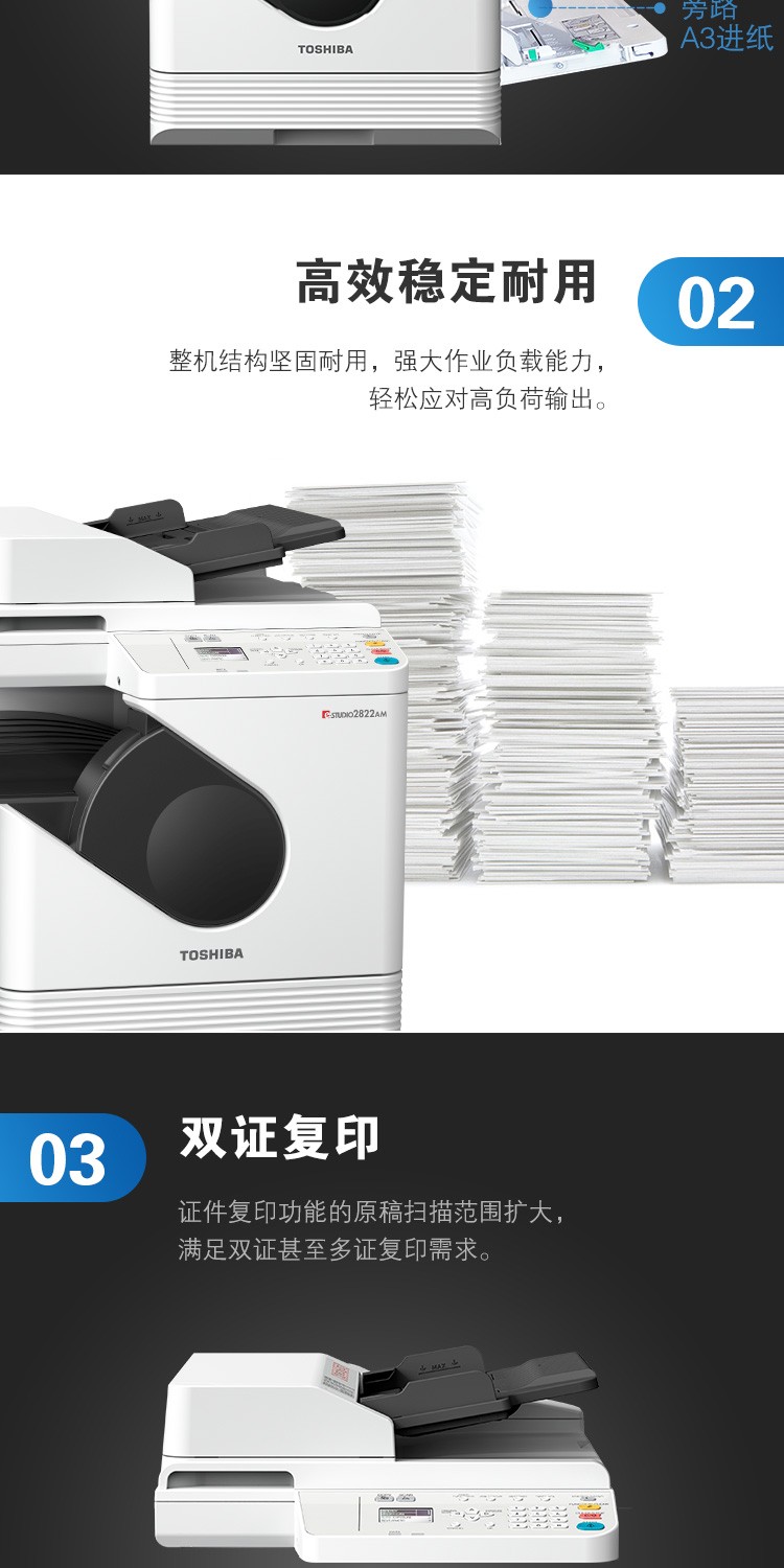 商品名称:东芝(TOSHIBA)DP-2822AM 数码复合机 A3黑白激光双面打印复印扫描 e-STUDIO2822AM+自动输稿器+单纸盒