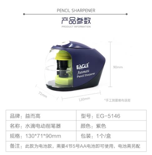 商品名称:益而高 EG-5146 水滴电动削笔器 电池款 削笔机多功能转笔刀刨笔机旋绞机