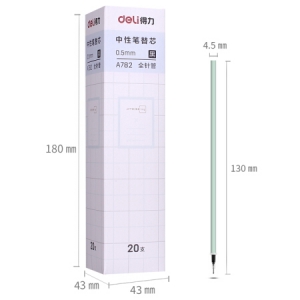 商品名称:得力 A782 中性笔替芯0.5mm全针管(黑) 20支/盒 (计价单位:支)