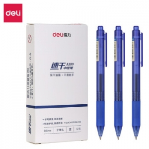 商品名称:得力A109速干按动中性笔0.5mm子弹头(蓝) 12/盒 (计价单位:支)