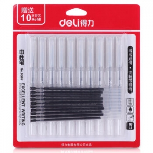 得力 6667 中性笔0.5mm全针管(黑)(10+10/卡) 12/盒/144/箱 (计价单位:卡)