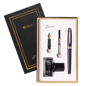 商品名称:毕加索(pimio)钢笔带小墨水礼盒套装双笔尖套装0.5mm+0.7mm男女办公书法练字笔美工笔T717亮黑金夹