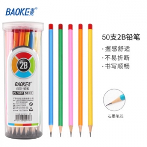 商品名称:宝克(BAOKE)PL1687 学生三角杆原木学姿铅笔素描绘画笔彩色杆 50支2B (计价单位:筒)