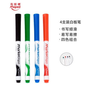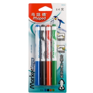 马培德(Maped)企鹅儿童白板笔4支装 蓝黑红绿四色套装水性可擦记号笔 741312CH