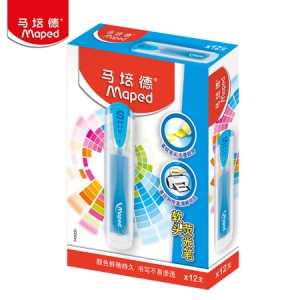 商品名称:马培德 Maped 盒装柔软荧光笔 蓝色*12支 糖果色大容量软斜头记号笔 745930CH (计价单位:支)