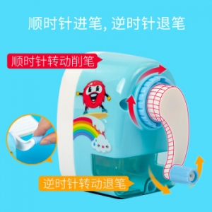 马培德 026510CH削笔器 手摇卷笔刀男女学生美术用铅笔刀自动进铅转笔刀削笔机 卡通削笔机 蓝色