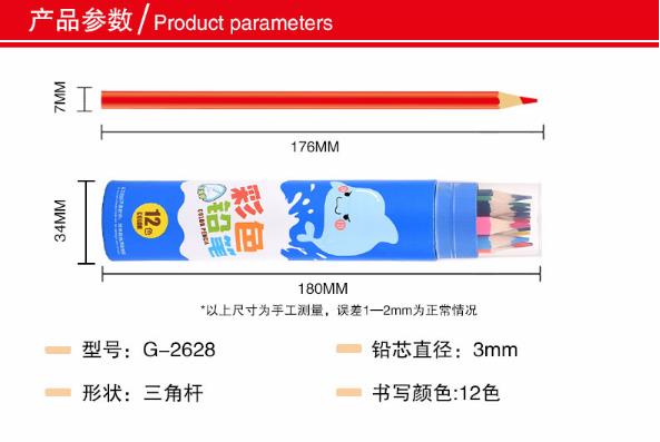 商品名称:金万年 G-2628 跳跳海豚三角木杆圆纸筒12色彩色铅笔-多颜色 (计价单位:筒)