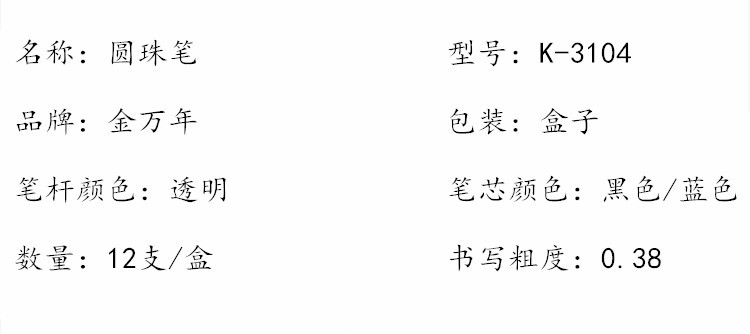 商品名称:金万年 K-3104 金钻极细0.38MM半针配RS02系列芯拔帽圆珠-蓝色