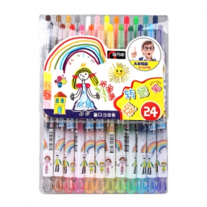 金万年 G-0176 蜡妹子长杆24色套装旋转蜡笔-多颜色