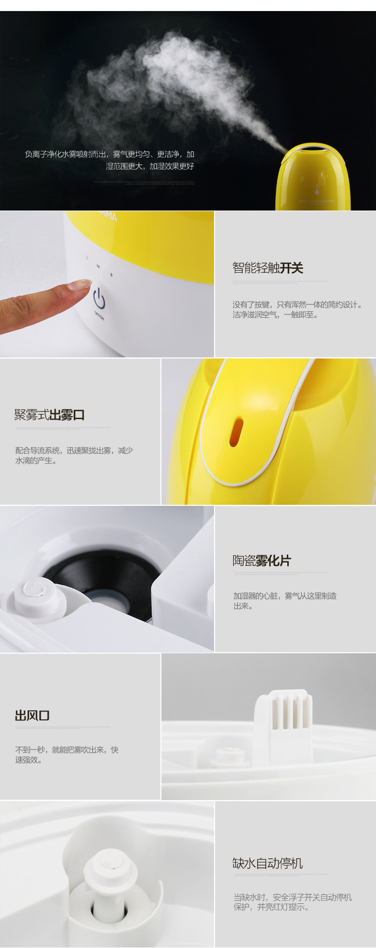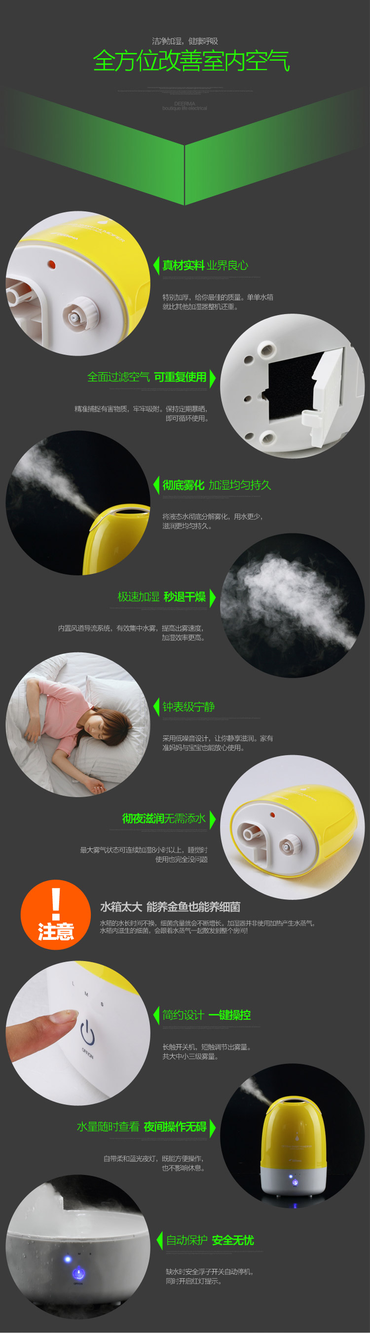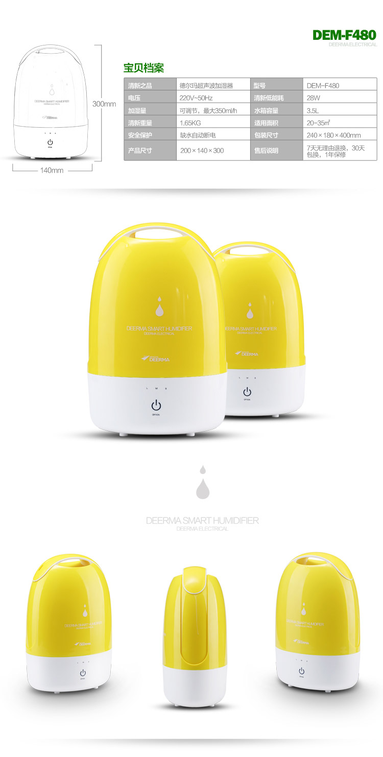商品名称:德尔玛(Deerma)DEM-F480 3.5L 静音净化加湿器(黄)