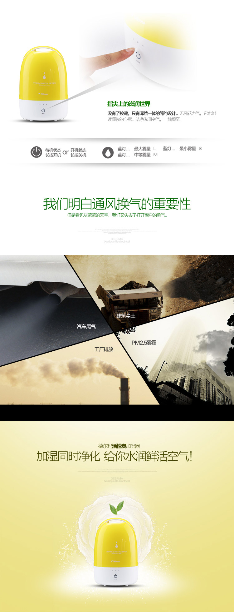 德尔玛(Deerma)DEM-F480 3.5L 静音净化加湿器(黄)