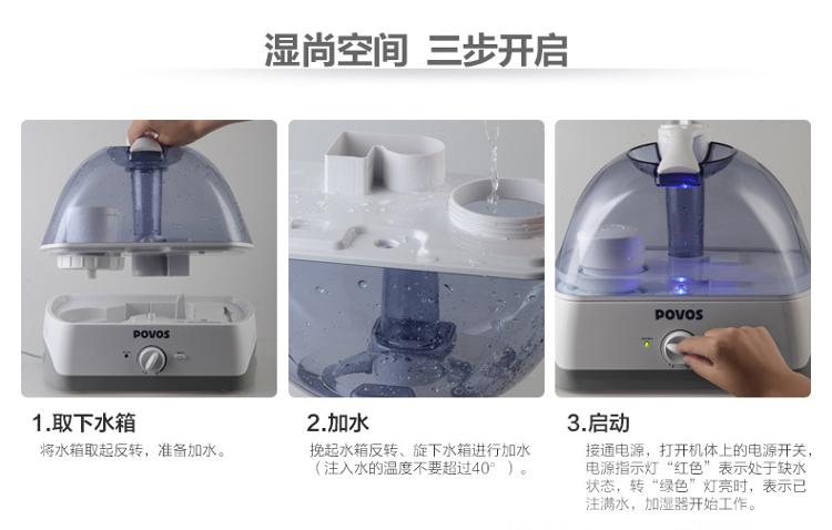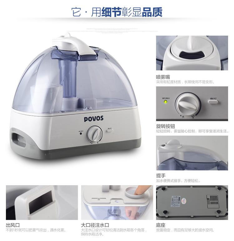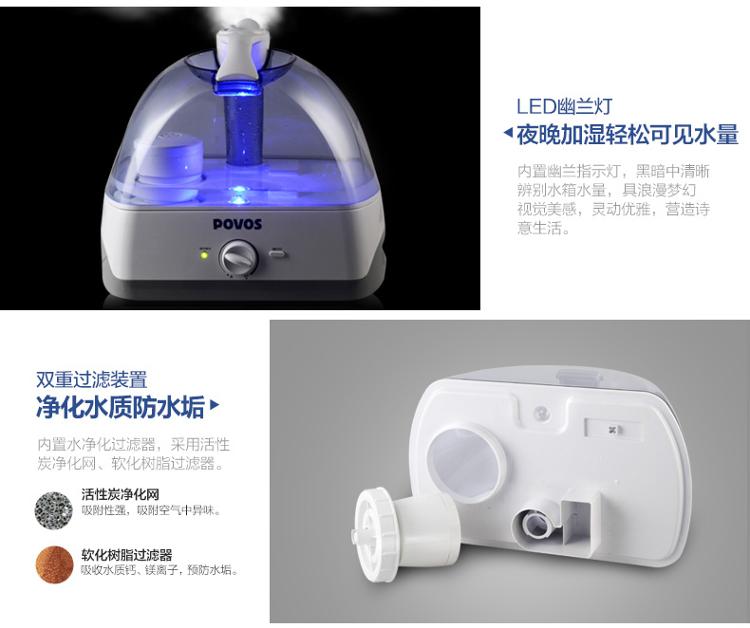 奔腾(POVOS) PW115 静音带夜灯带滤芯加湿器 5L大水箱大容量欧式净化型