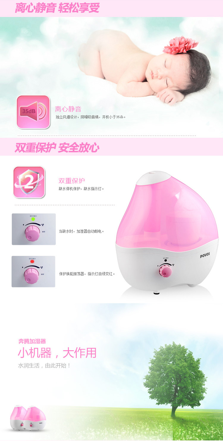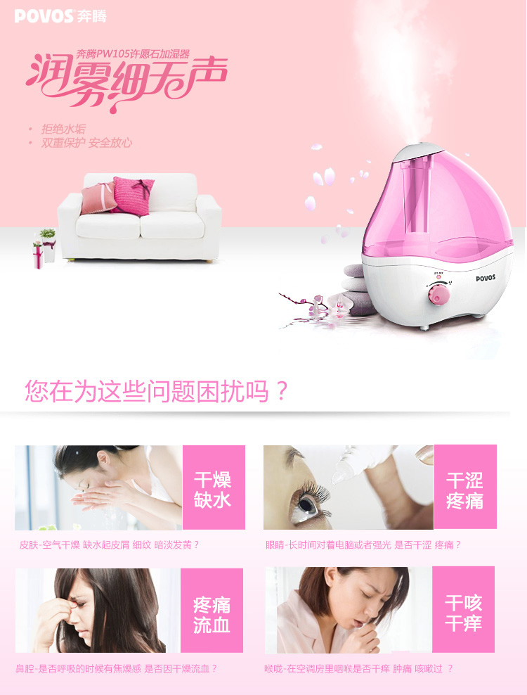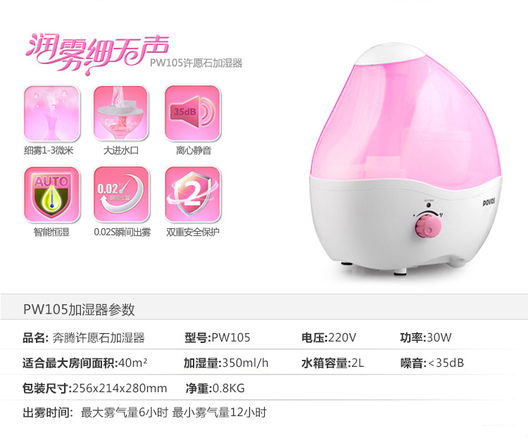 商品名称:奔腾(POVOS) PW105 许愿石女生款 2.0L 净化处理 静音加湿器