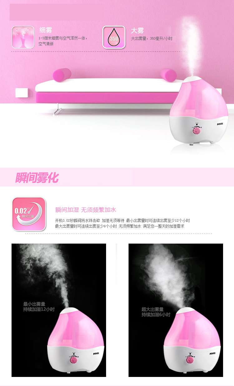 奔腾(POVOS) PW105 许愿石女生款 2.0L 净化处理 静音加湿器