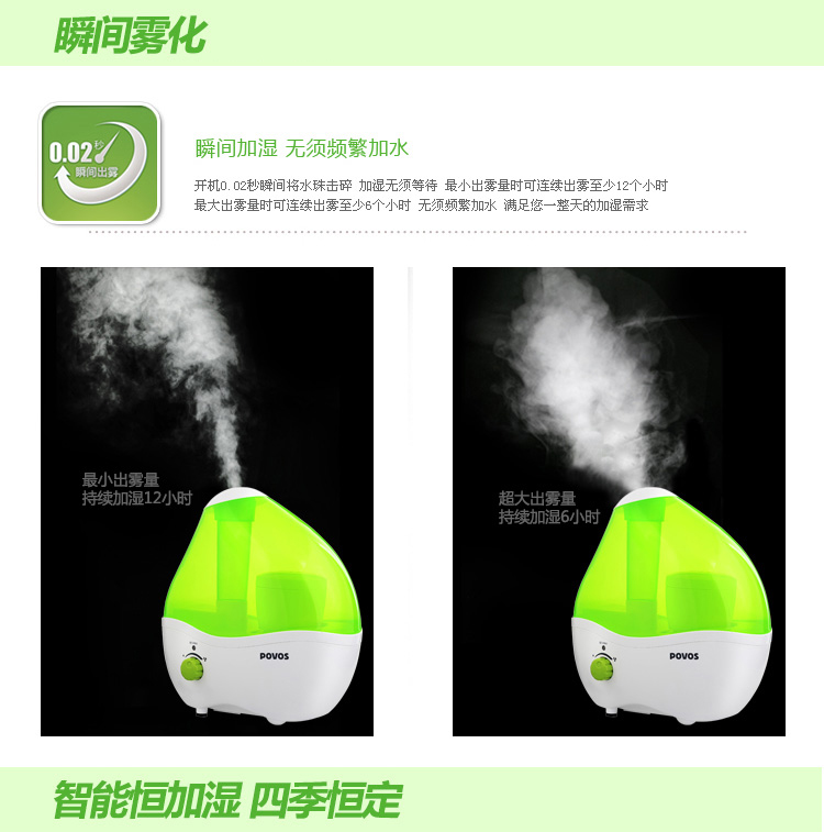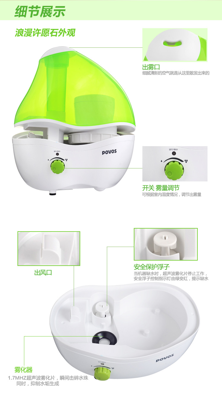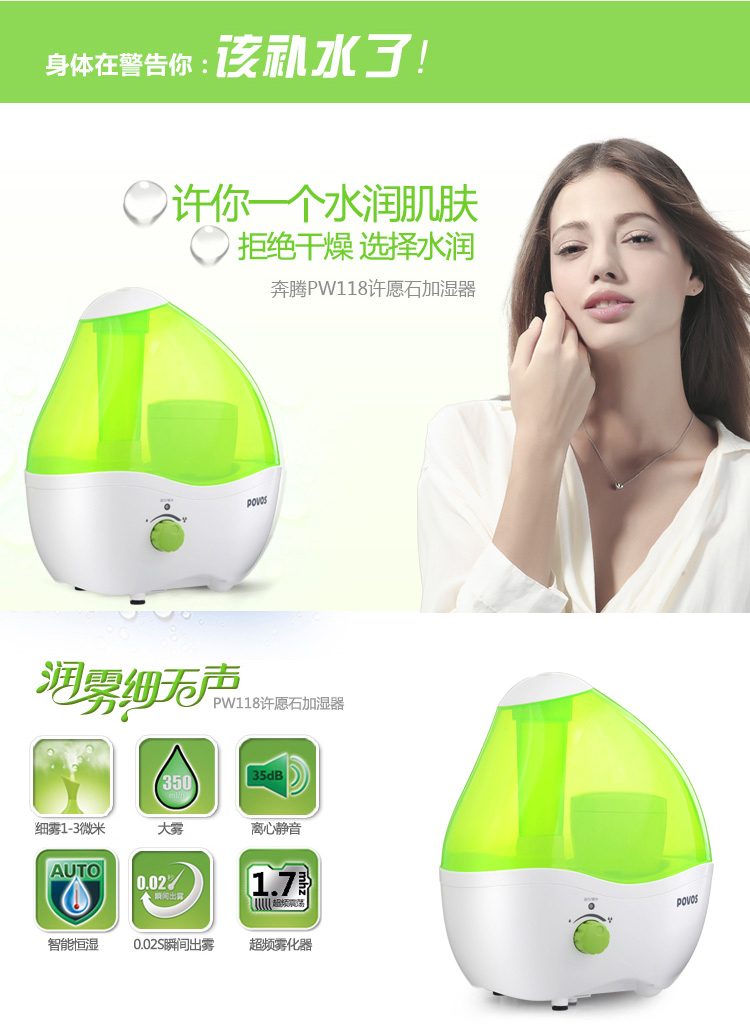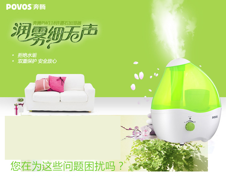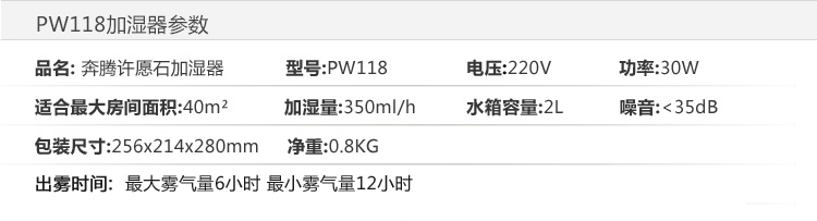 商品名称:奔腾(POVOS) PW118 静音加湿器 2升水箱 大雾量 许愿石