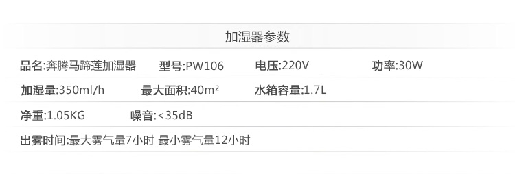 商品名称:奔腾(POVOS) PW106 马蹄莲 1.7L 净化型 静音加湿器