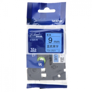 兄弟(brother)TZe-Z521 蓝底/黑字9mm不干胶打印纸标签色带